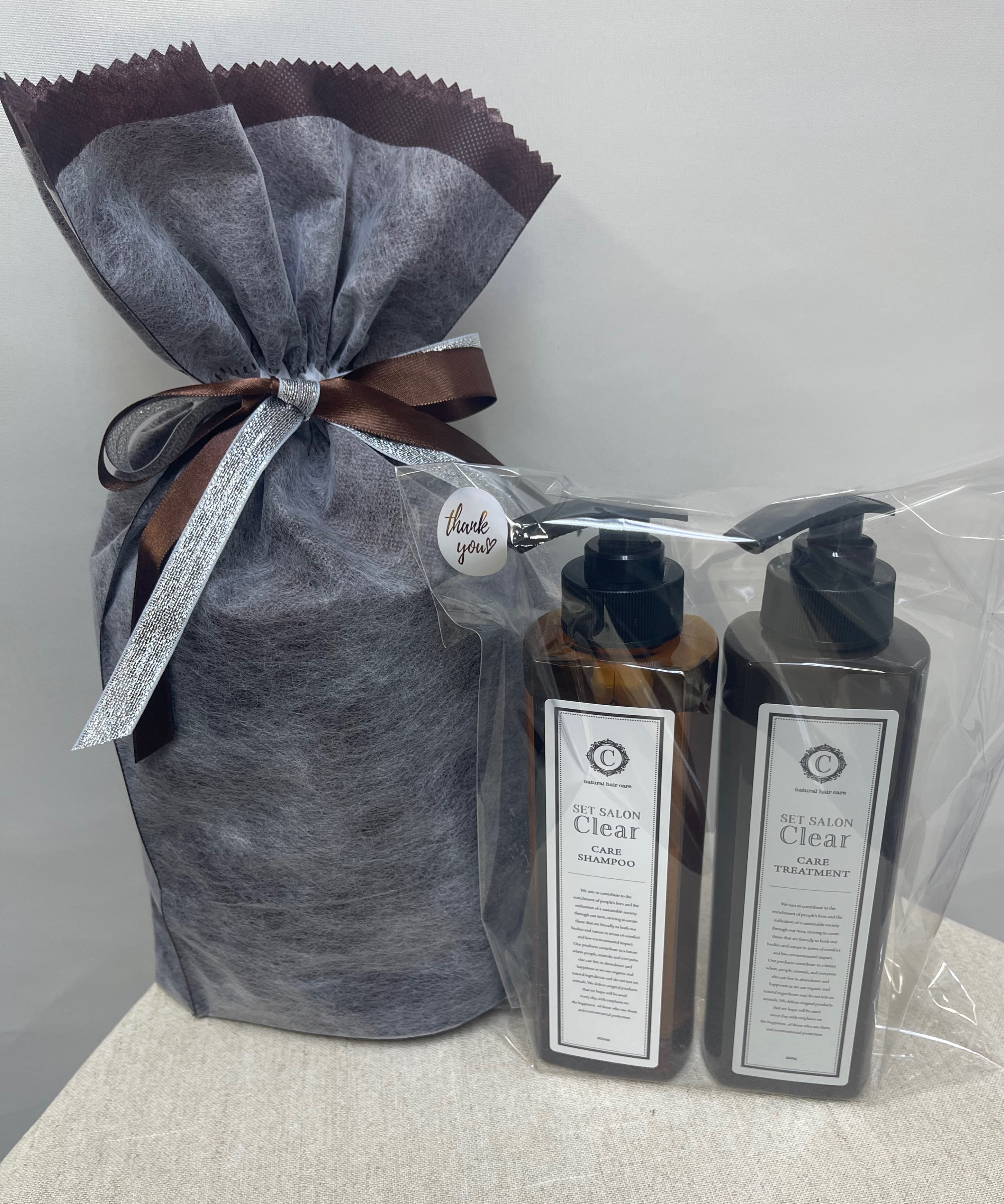 人気のシャンプーとトリートメントのセットをギフトとして、ラッピングをして販売。