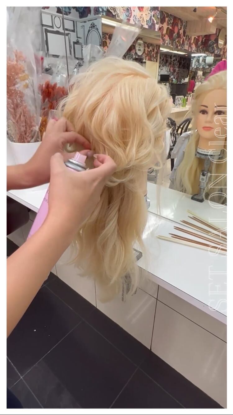 ふわふわアップを作り、宝石をかざりとして付けたアレンジスタイル動画です。